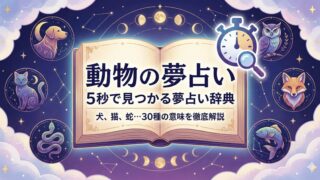 通勤電車の中、ふと昨夜見た不思議な動物の夢を思い出していませんか? 「あの大きな熊は、一体どんな意味があったんだろう…」なんて、気になっていたり。この記事は、そんなあなたの好奇心に5秒で答える「超高速・夢占い辞典」です。難しい話は一切なし。...