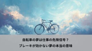 ブレーキが効かない自転車の夢、本当に怖い思いをされましたね。目が覚めても心臓がどきどきして、「もしかして、今の仕事が失敗する前兆なんじゃ…」と不安になってしまうお気持ち、痛いほどよく分かります。でも、どうか安心してください。その夢は、あなた...