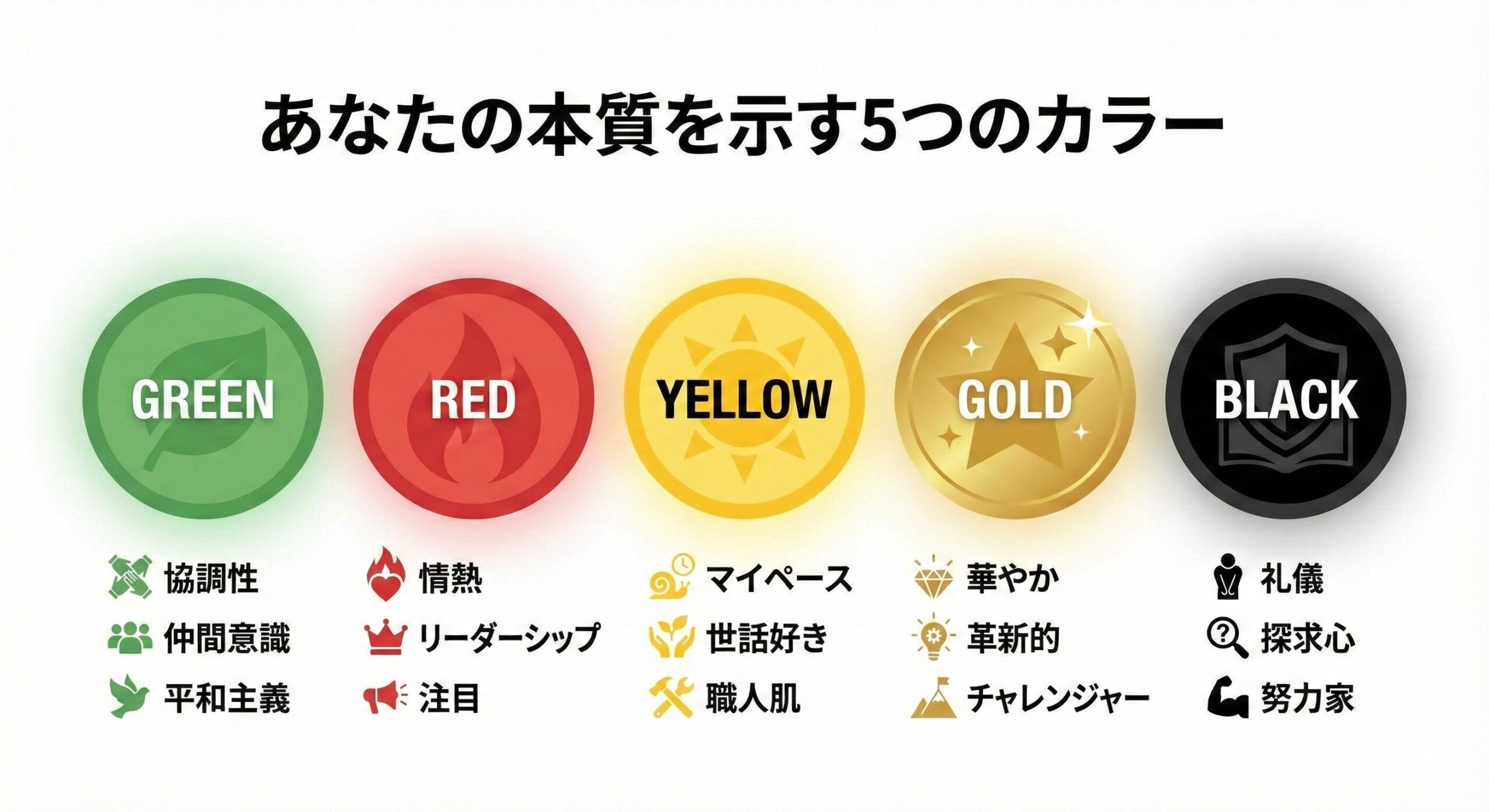 色は全部で5種類。それぞれが、あなたの行動の源となる価値観を示しています。