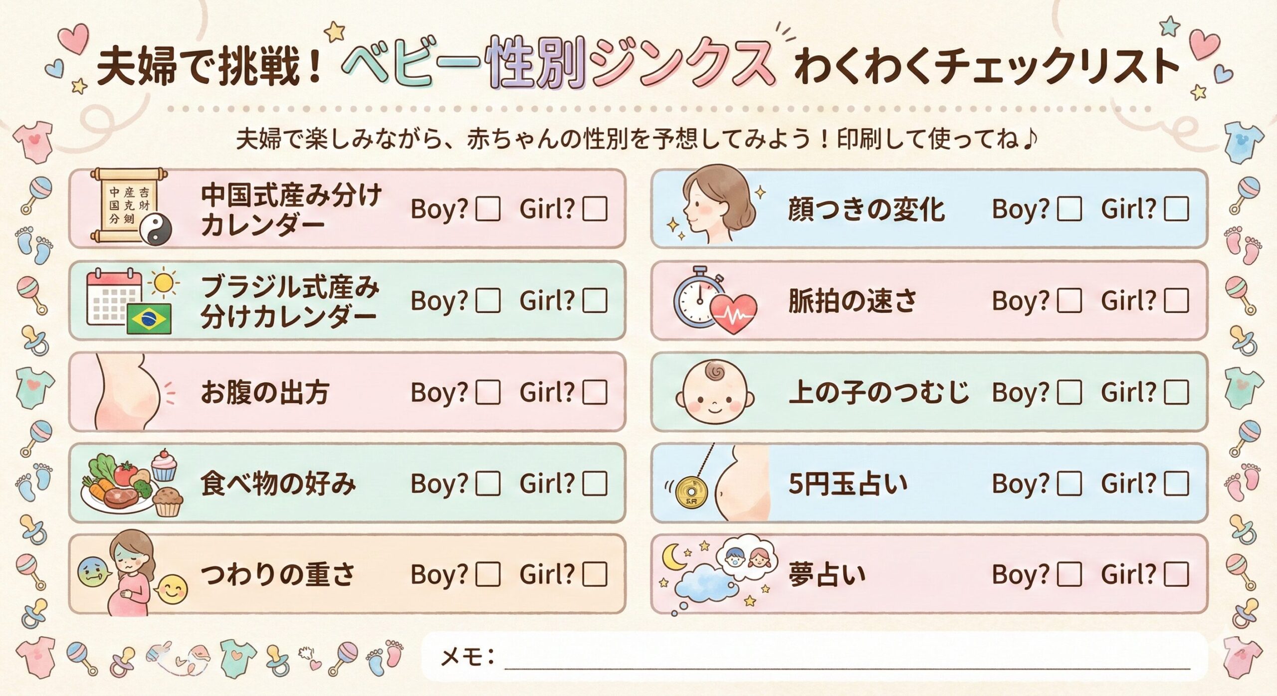 この記事では、赤ちゃんの性別ジンクスを、医学的な事実を知った上で、夫婦のコミュニケーションツールとして心から楽しむための方法をお伝えしてきました。