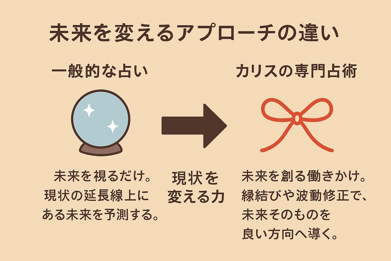 一般的な占いと、カリスに在籍する一部の専門家の占術には、決定的な違いがあります。