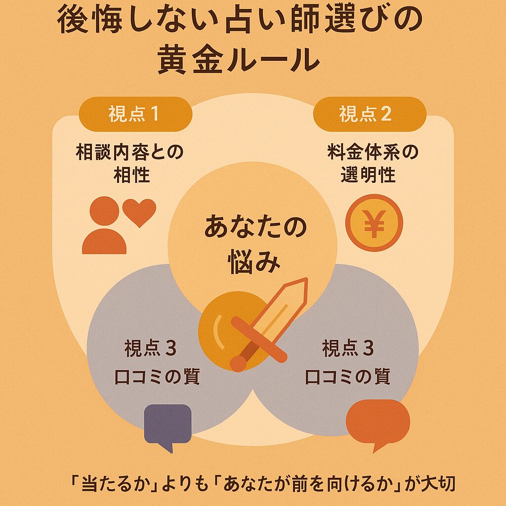 - 「当たるか」よりも「相談内容との相性」「料金の透明性」「口コミの質」を重視する