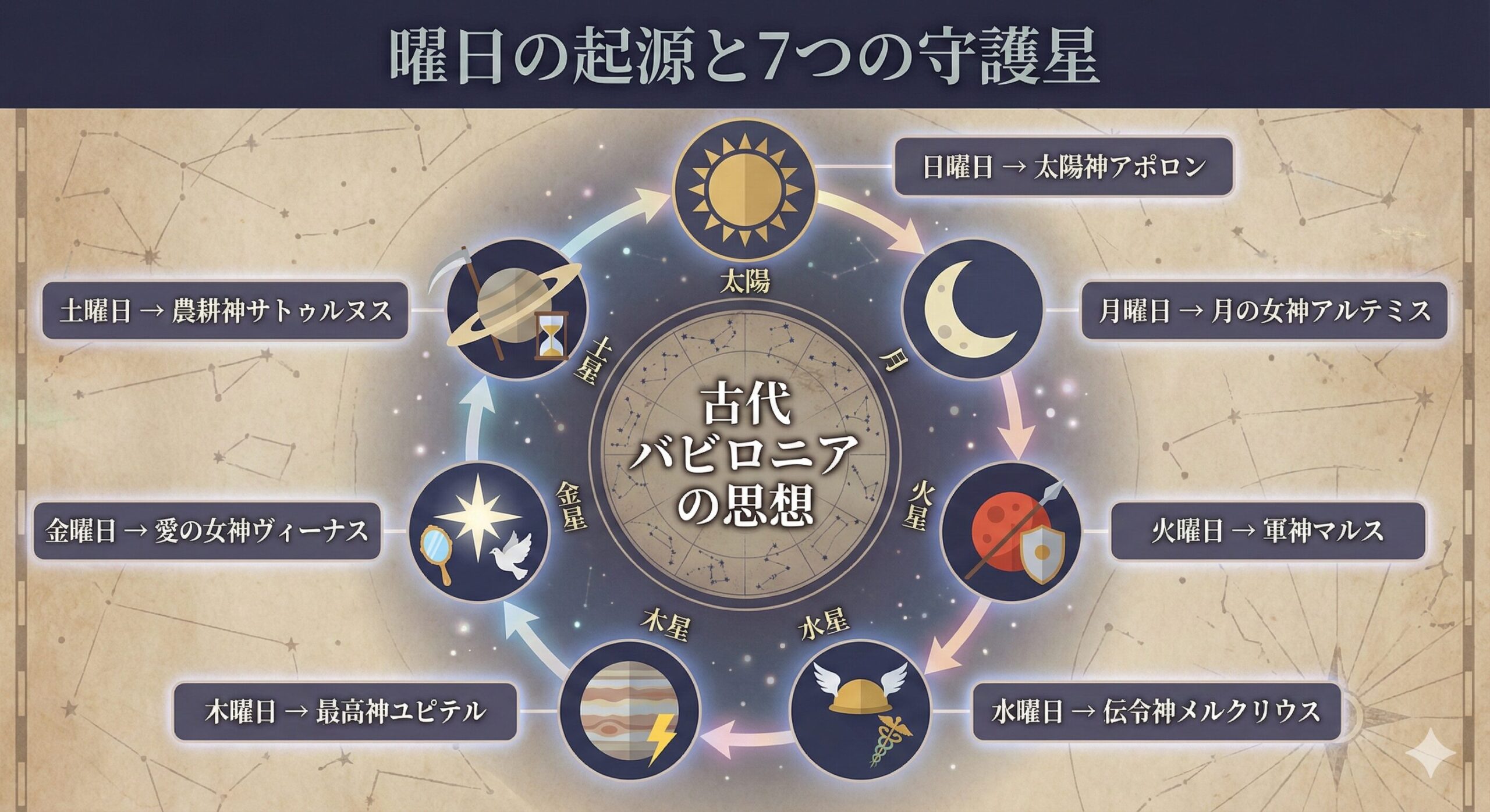 私がよく受ける質問の一つに、「なぜ曜日で性格がわかるのですか?」というものがあります。その答えは、この古代からの知恵にあります。あなたが生まれた曜日は、特定の守護星と神の影響を最も強く受けた日。だからこそ、その曜日の性質が、あなたの基本的な性格や運命の傾向に反映される、と考えられているのです。