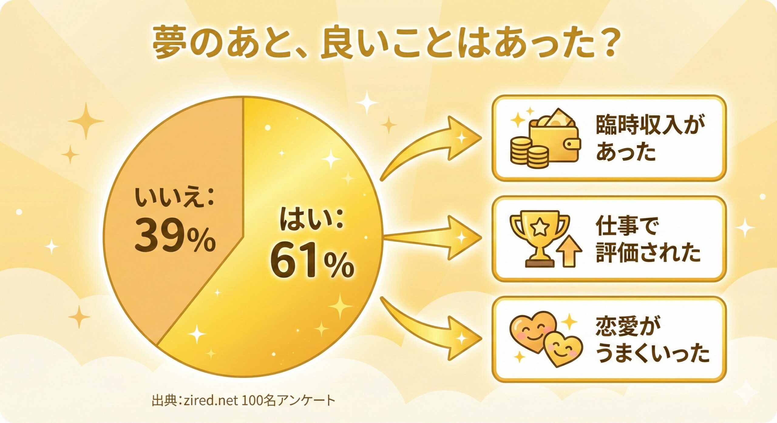 - 100人への調査では、61%が夢の後に幸運を体験しており、その信頼性は客観的なデータに裏付けられています。
