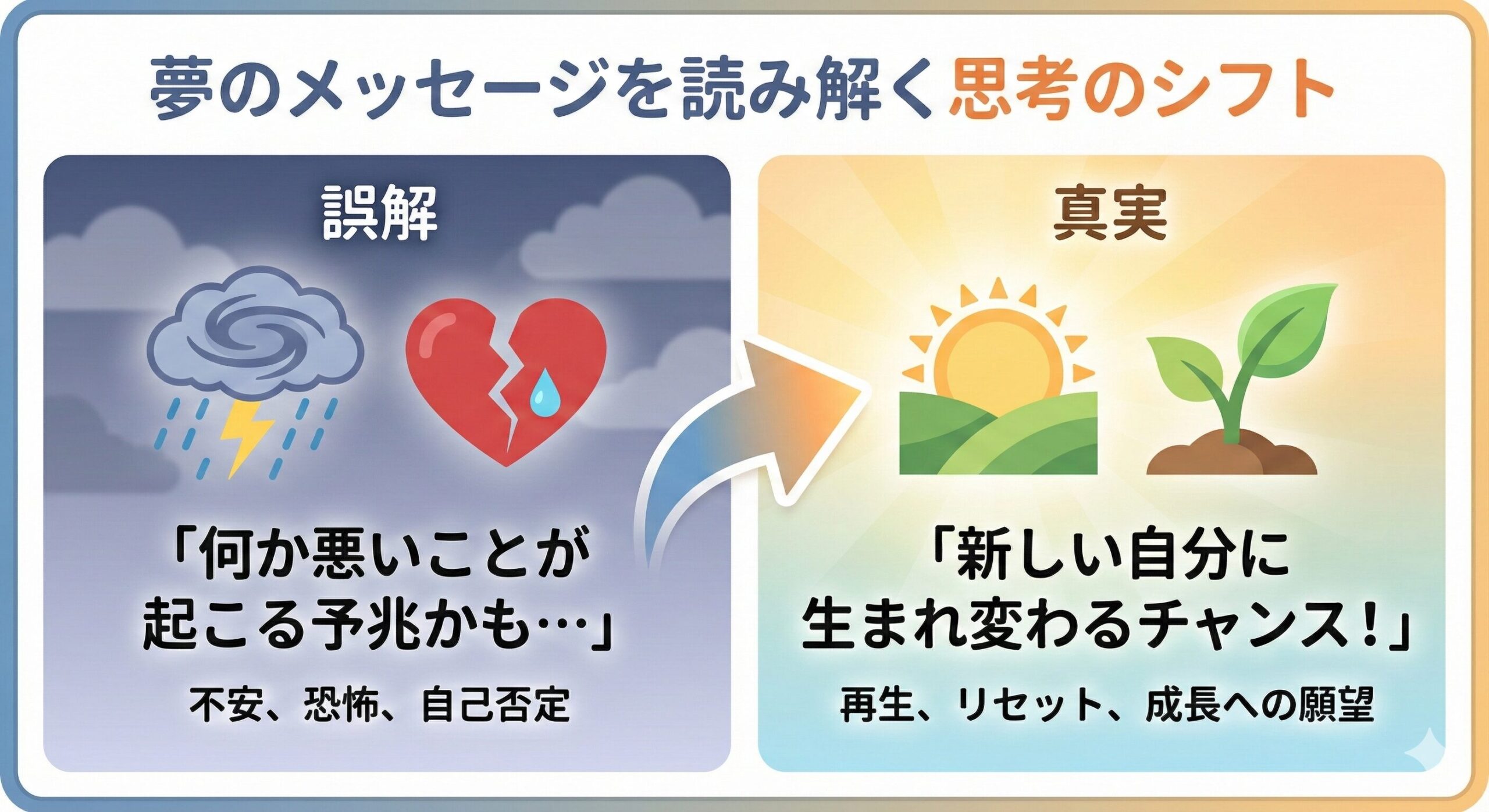 読み終える頃には、夢への恐怖が和らぎ、「そういうことだったのか」と自分の心を少し客観的に見つめられるようになっているはずです。
