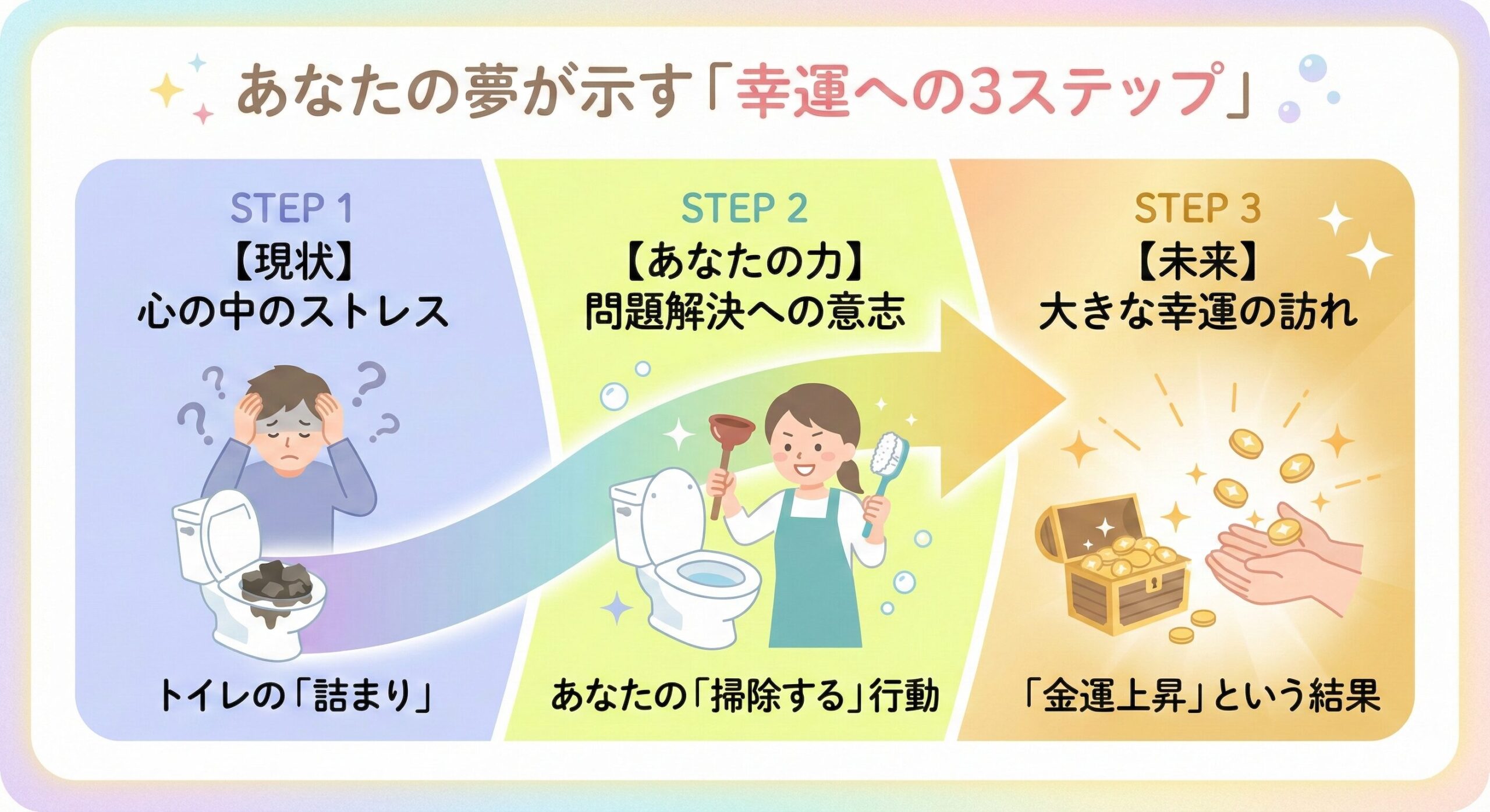 もう一度、大切なことをお伝えします。あなたが見た「汚いトイレが詰まって掃除する夢」は、不安になるようなものでは決してありません。