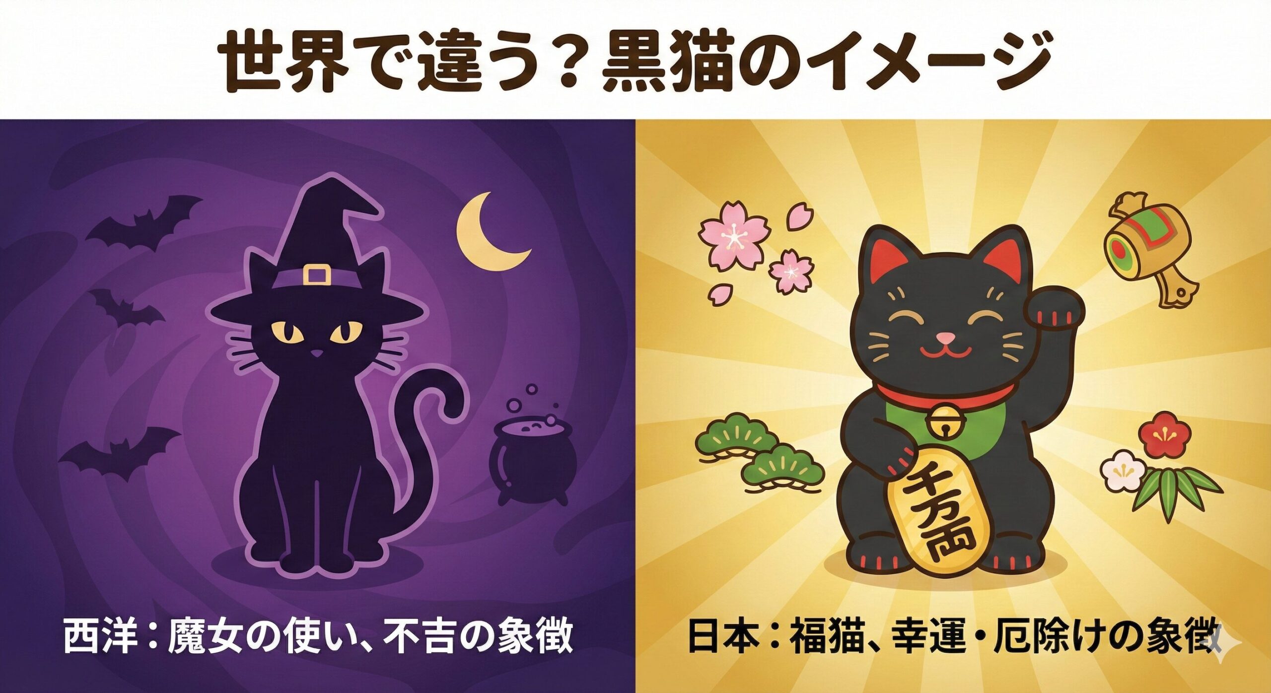 しかし、ここで知っておいていただきたい大切なことがあります。あなたの文化的ルーツである日本では、黒猫は全く逆の存在でした。