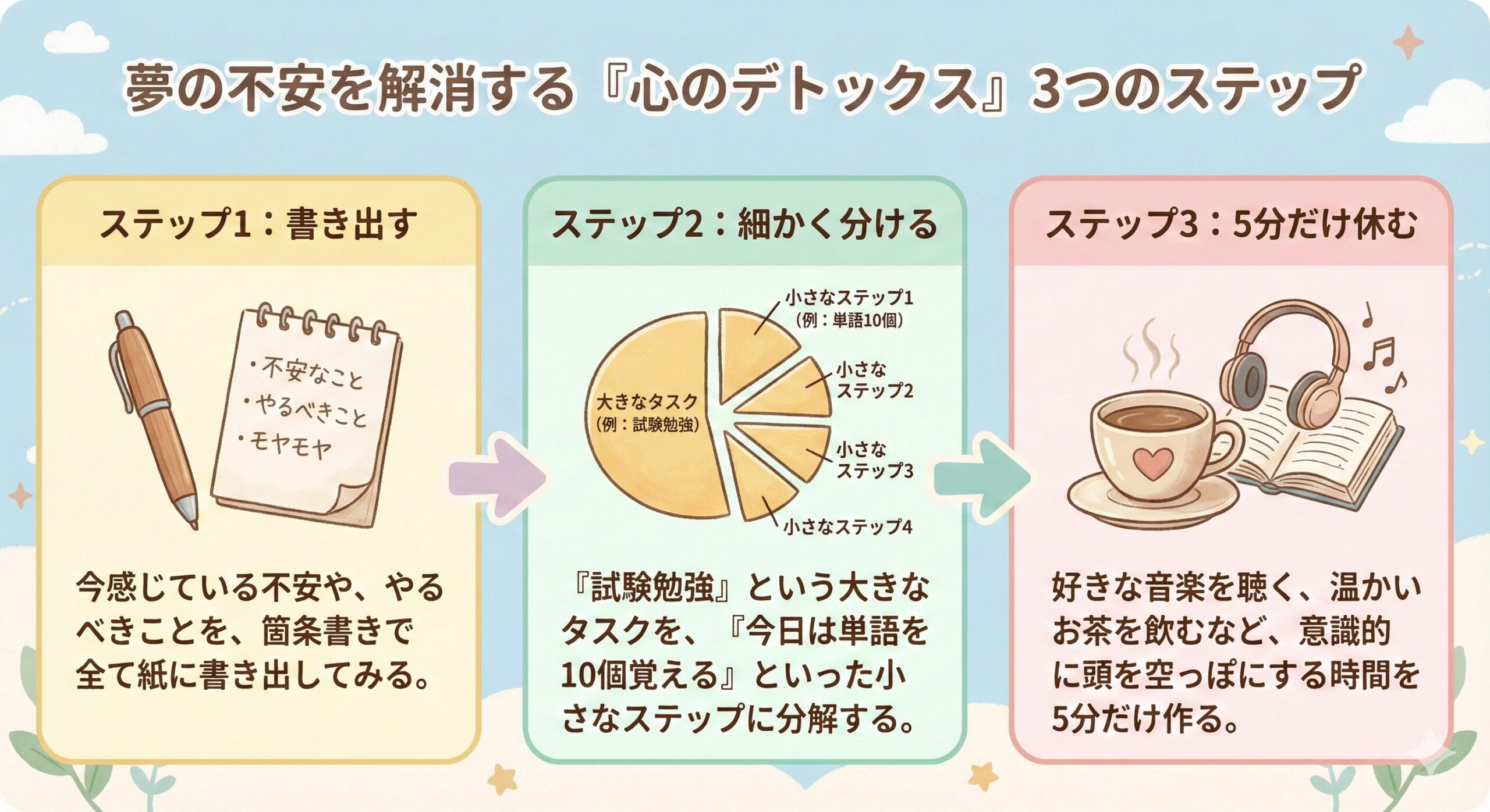 - ステップ1:不安を「書き出す」