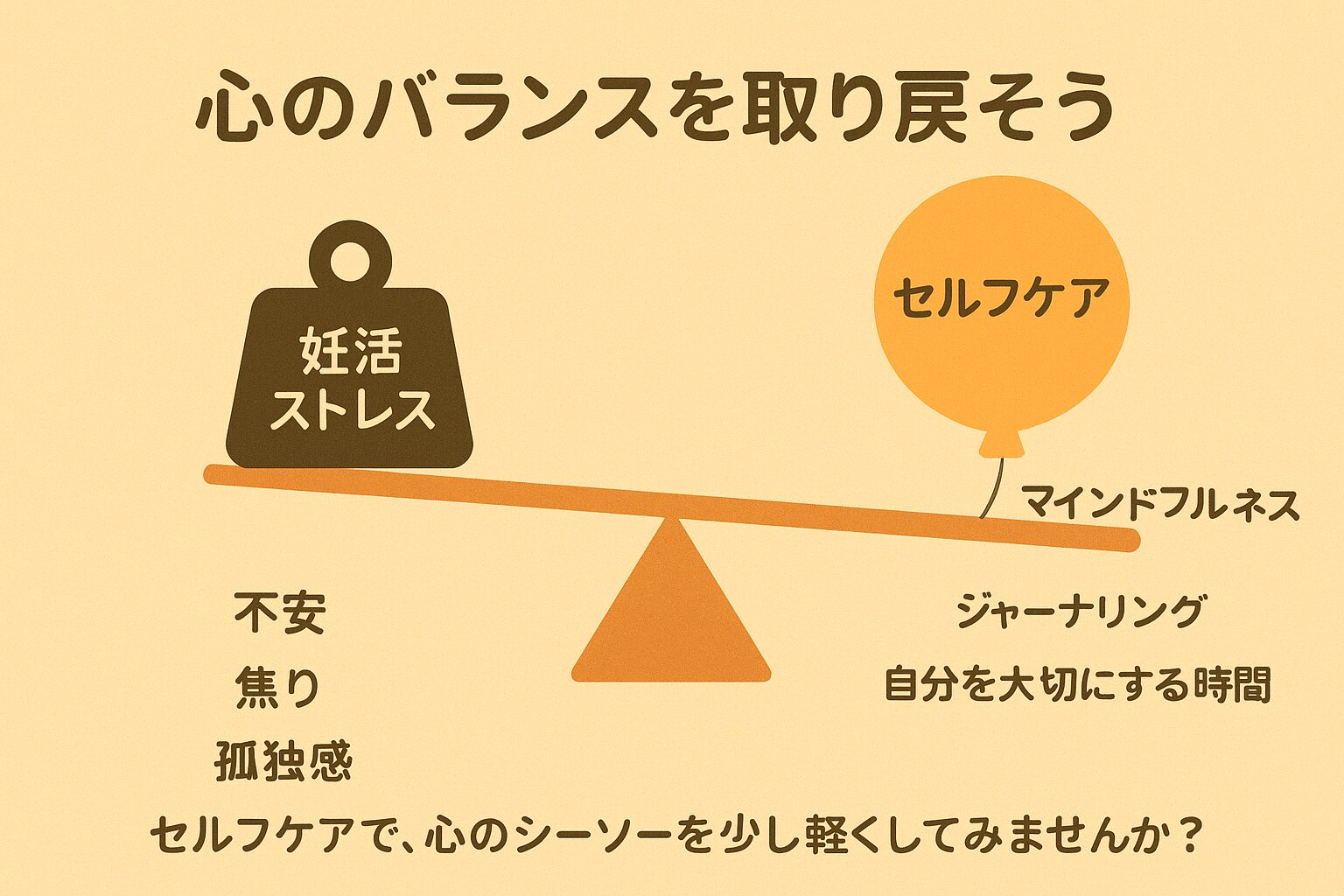 妊活ストレスは、心身に大きな影響を与えることが知られています。この妊活ストレスという重荷は、セルフケアという心の栄養によって、その重さを和らげることができます。コントロールできない未来を案じるのではなく、今コントロールできるご自身の心に優しく注意を向けること。それが、本当の意味で希望を育てる第一歩になるのです。