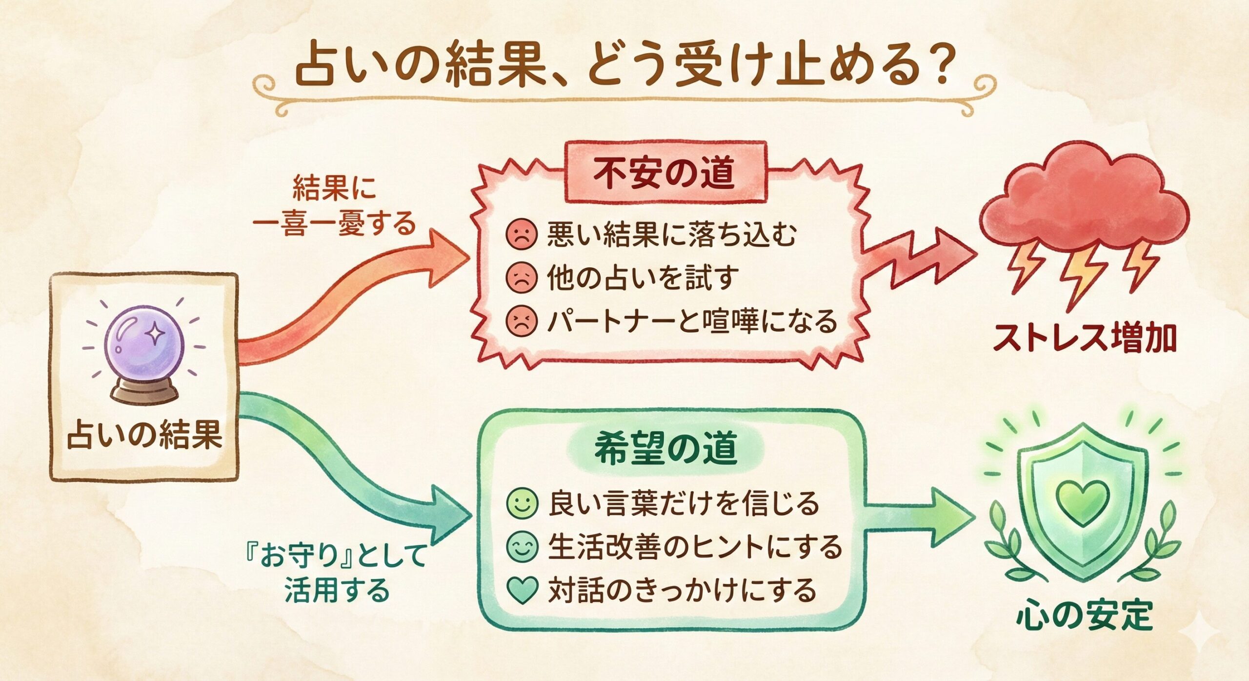 • 占いは「お守り」として、ポジティブな側面だけを活用する。
