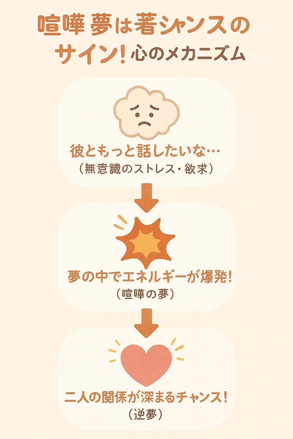 喧嘩の夢は、別れの予兆ではなく、あなたの心が「彼ともっと仲良くなりたい」と叫んでいる、とても前向きで素敵なサインです。夢が教えてくれたのは、不安になる未来ではなく、行動すれば変えられる、希望に満ちた未来の可能性です。