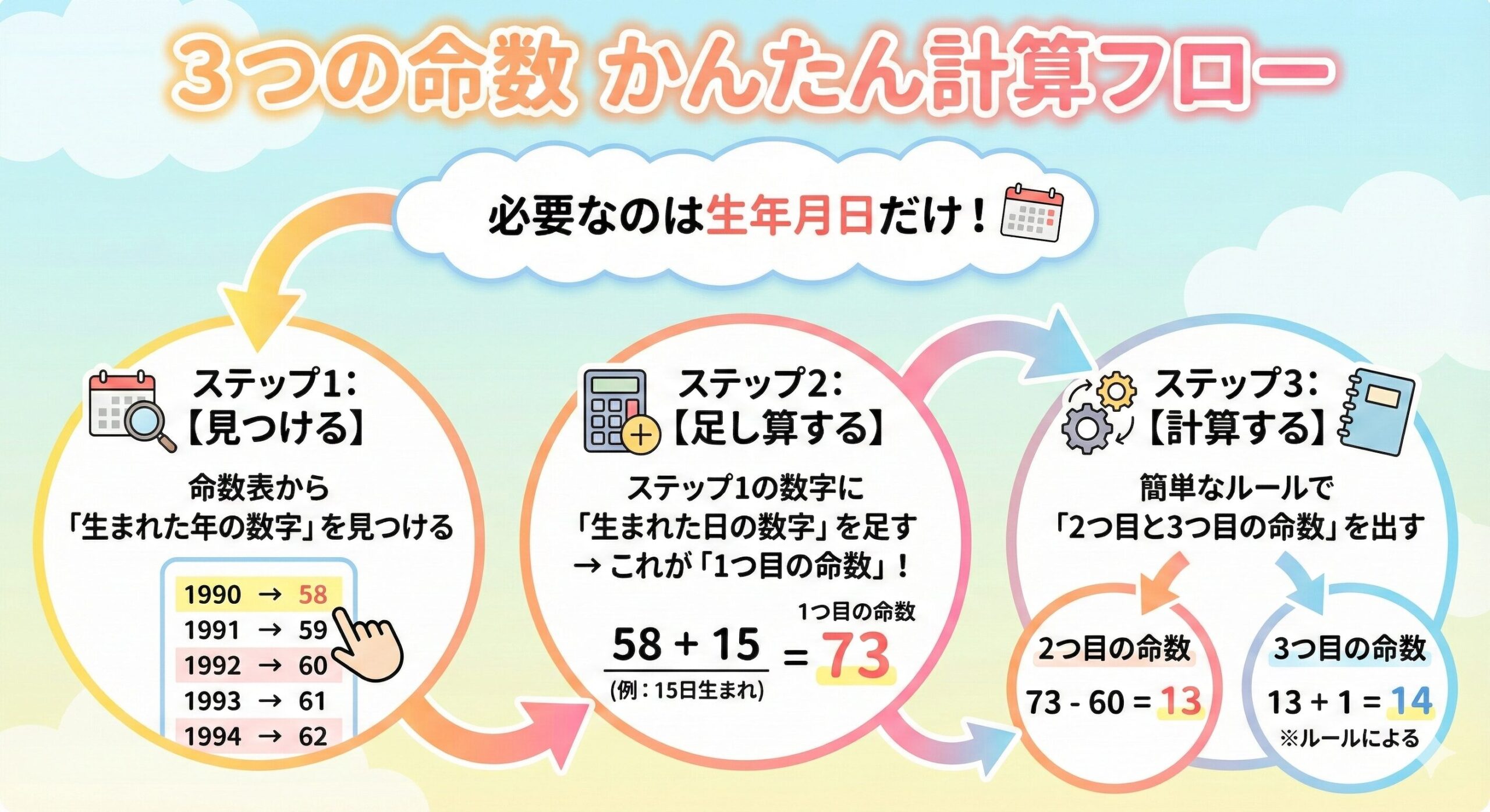 【完全図解】3ステップで簡単!3つの命数の計算方法