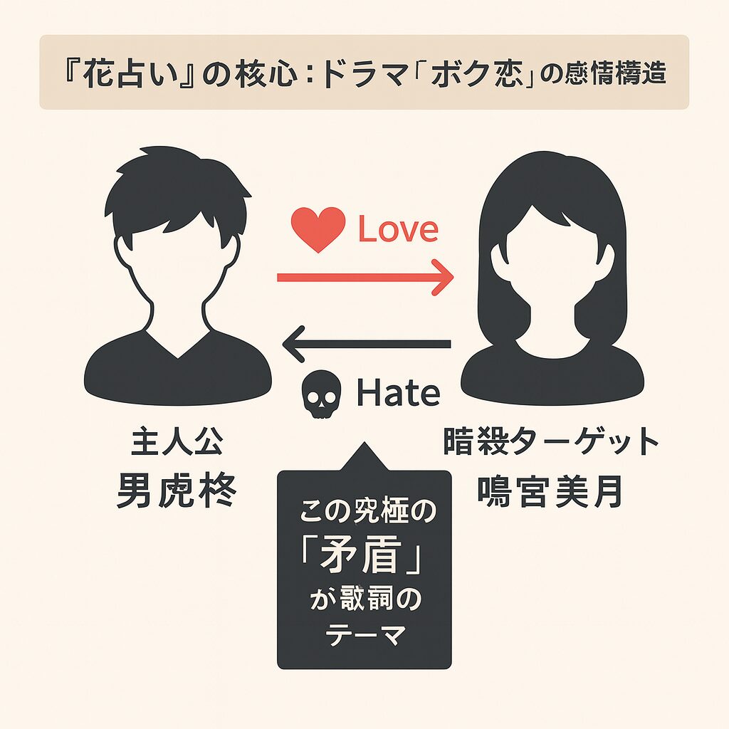 このドラマは、「最高に“間が悪い”殺し屋が、暗殺ターゲットの女に恋をしてしまう」という、非常に特異な設定を持っています。つまり、主人公は「好きな人を殺さなければならない」という究極の矛盾を抱えているのです。このどうしようもない心の葛藤こそが、『花占い』の歌詞全体を貫く切なさの正体なのです。