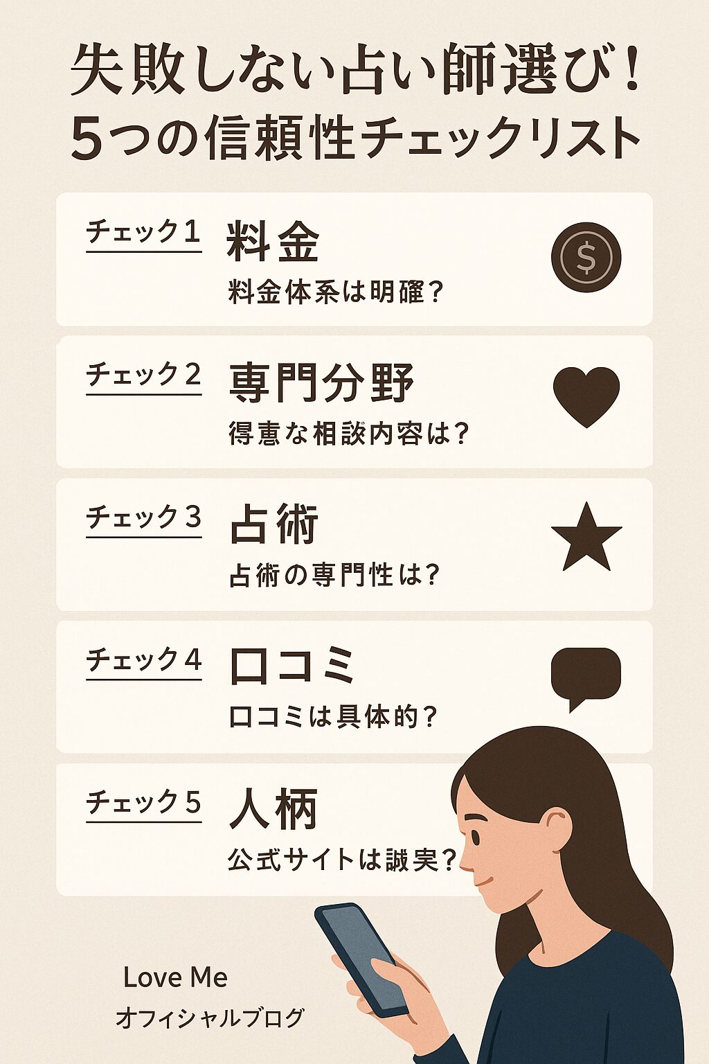 占い師を選ぶ上で、その占い師の「信頼性」が最も重要な評価基準となります。 人気や評判に流されず、あなた自身が「この先生なら信頼できる」と確信できることが、後悔しないための鍵です。