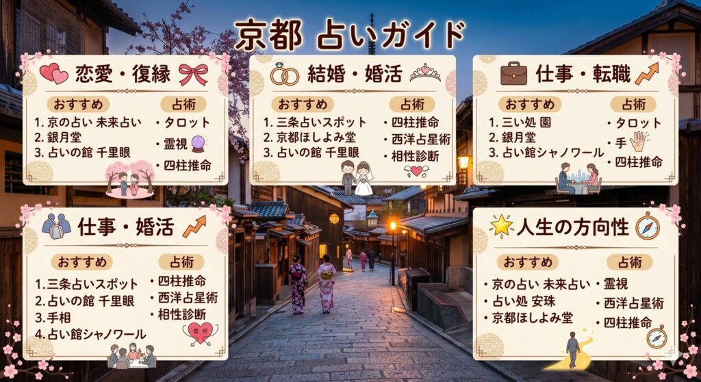 この記事では、祇園エリアで当たると評判の占い館・占い師15選を徹底比較してきました。