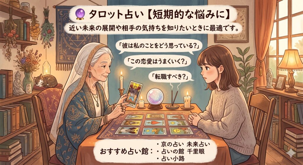 タロット占い:近い未来の展開、相手の気持ち、短期的な悩み