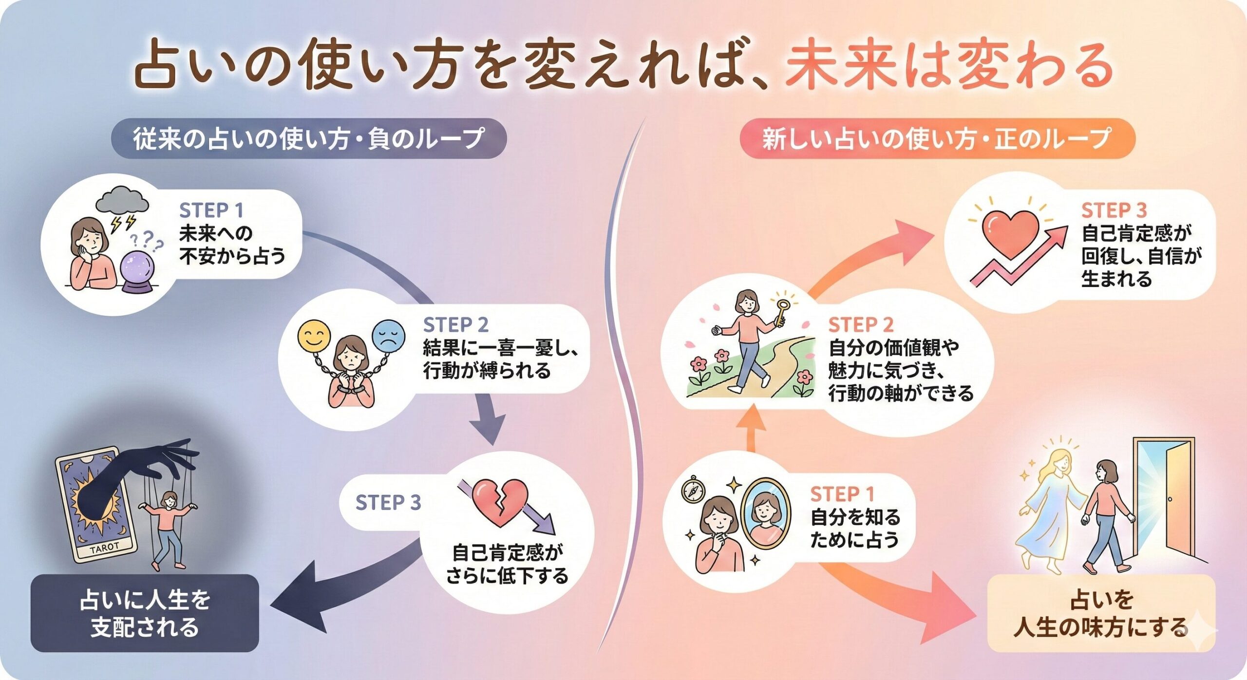 あなたの未来を決めるのは、占いの結果ではありません。他の誰でもない、あなた自身の心です。