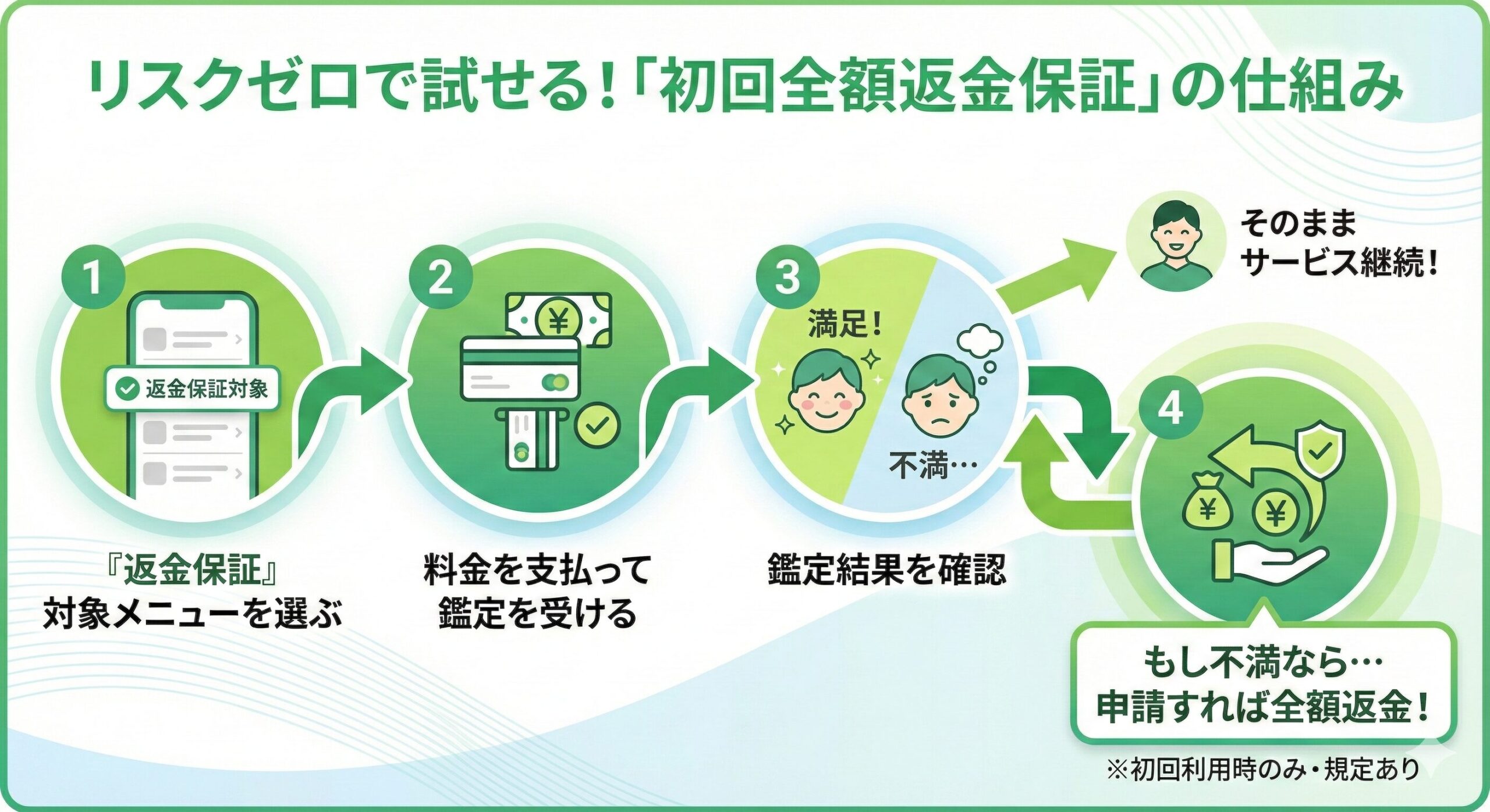 画像で解説!5分でできる「全額返金保証」を使った鑑定までの全ステップ