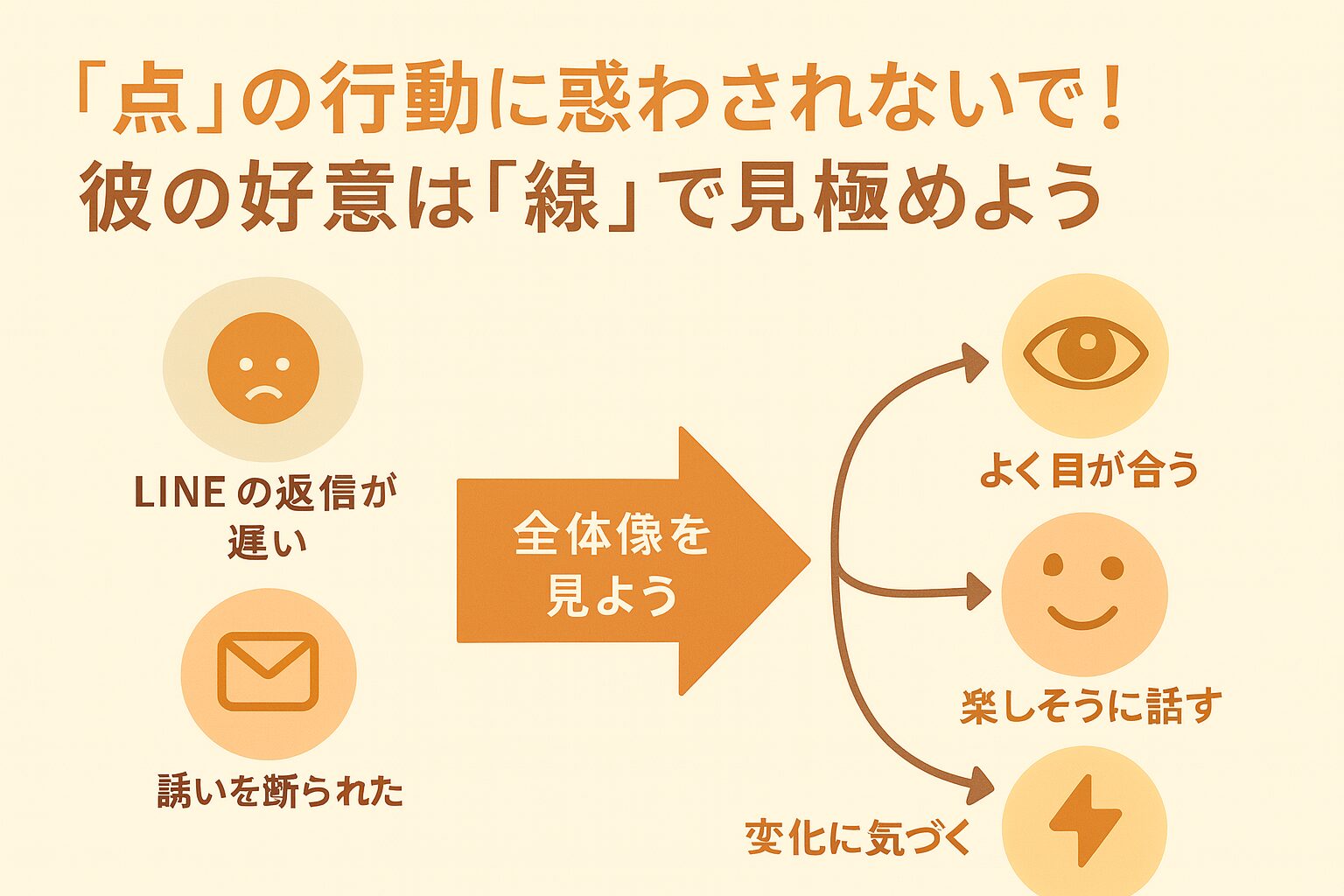 では、どうすれば彼の本音に近づけるのでしょうか。大切なのは、彼の行動を一つ一つの「点」で判断するのではなく、複数のサインが示す一貫した「線」で捉えることです。