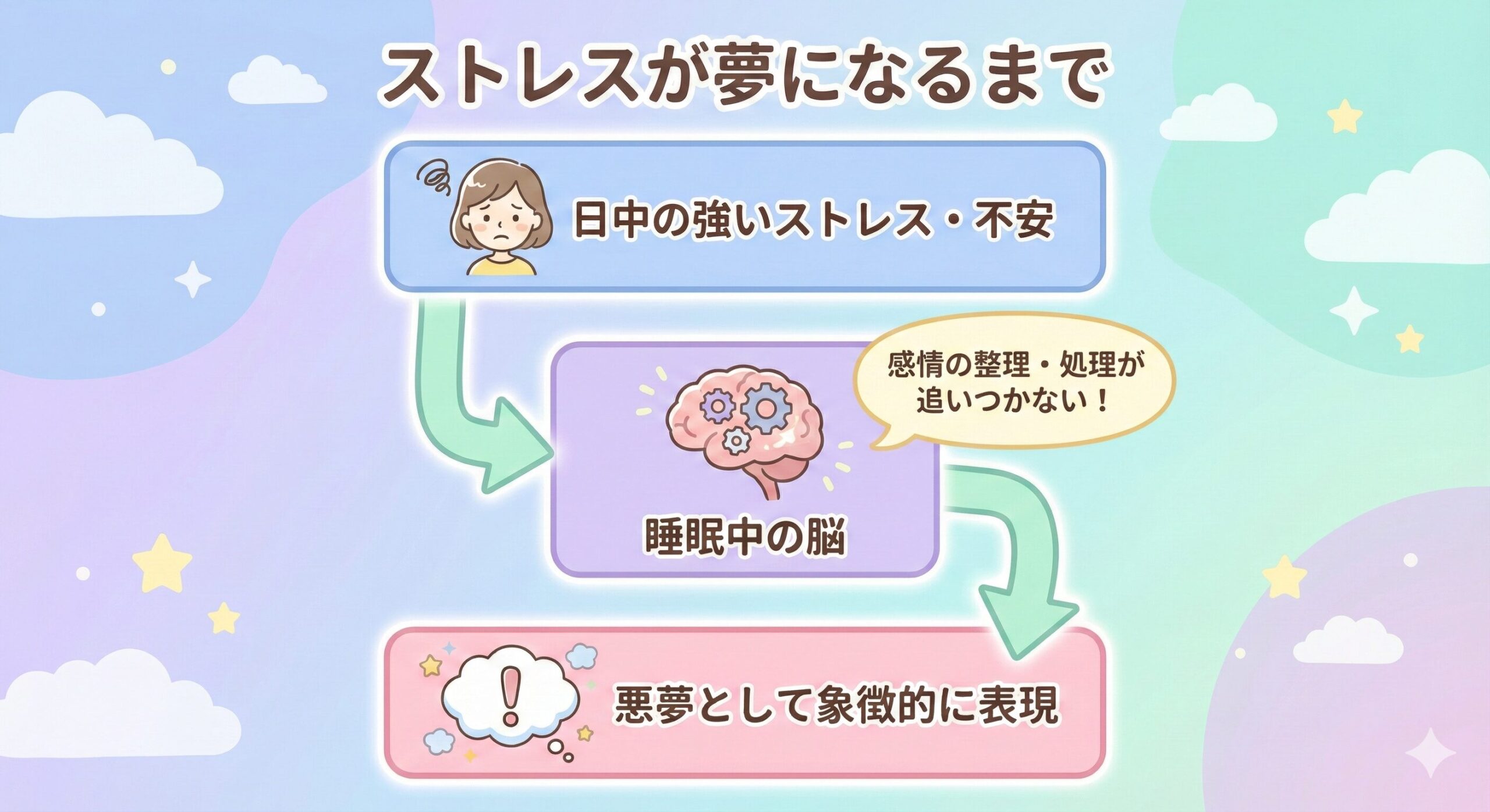 では、なぜ私たちの脳は、これほど衝撃的な「殺人の夢」という映像を作り出すのでしょうか。その背景には、ストレスと悪夢の間に存在する、心理学的な関係性があります。