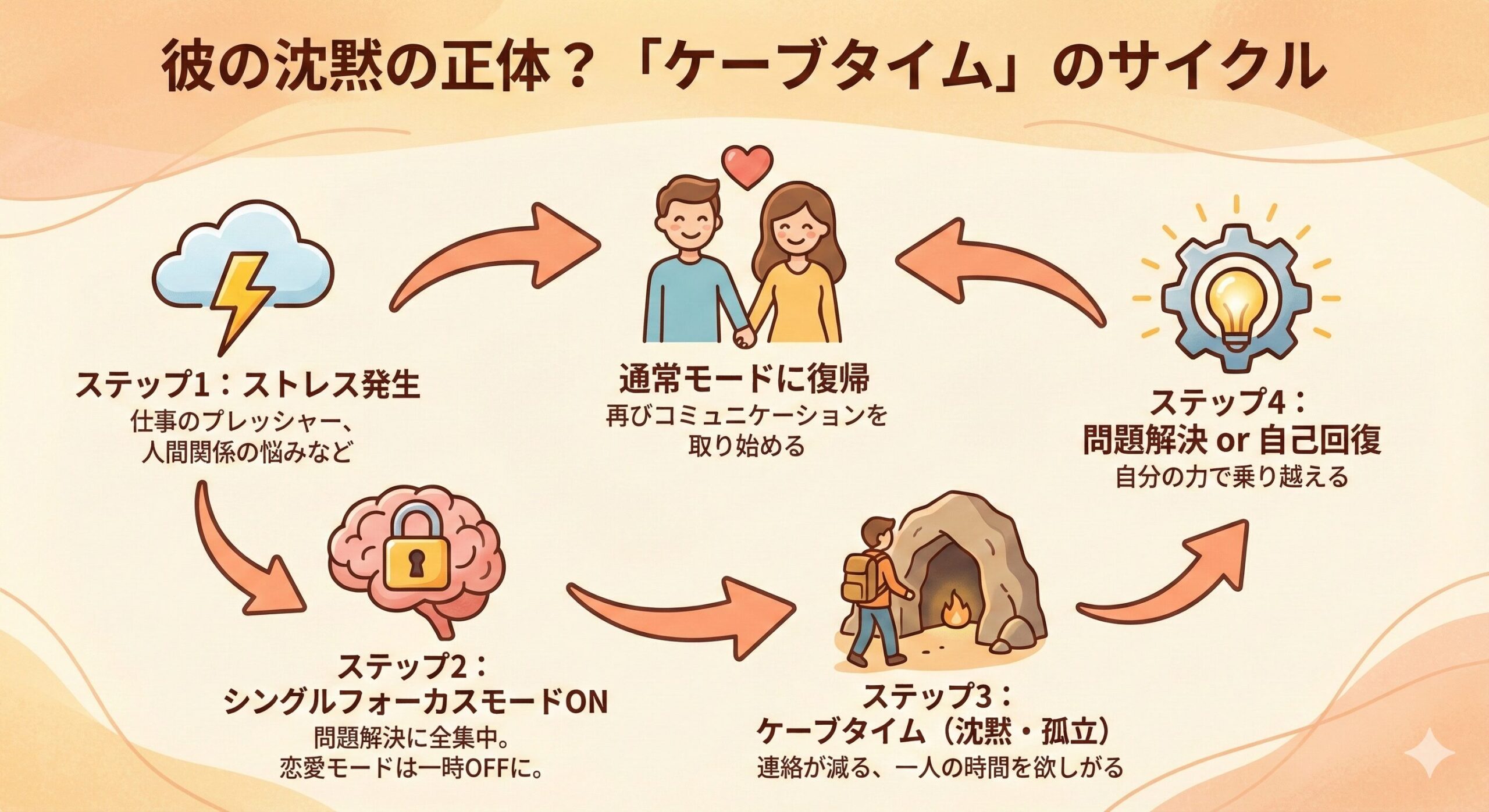 でも、その原因はあなたのせいではないかもしれません。彼の沈黙は、男性特有の心理状態が原因である可能性が高いのです。