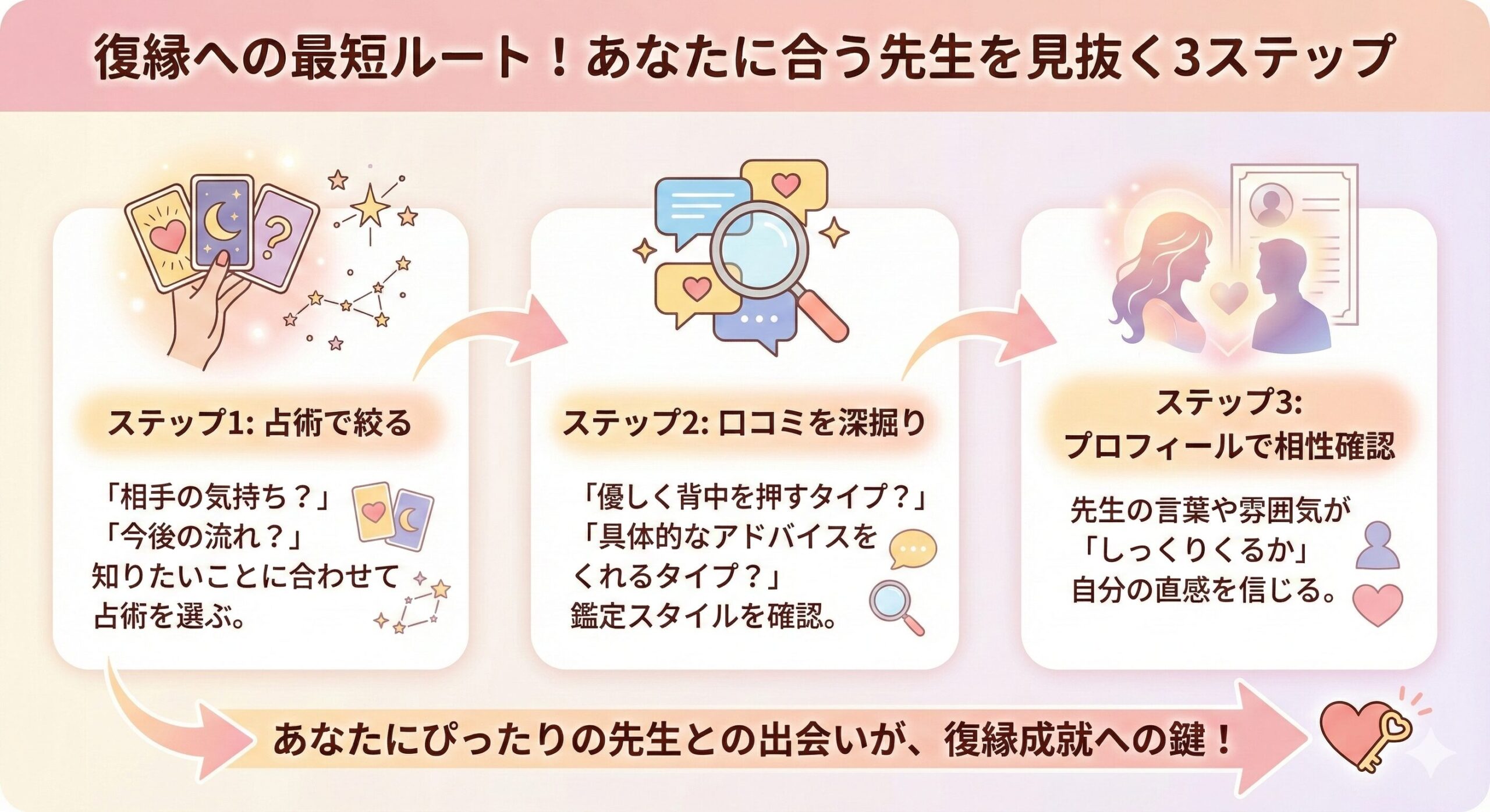 失敗しない、復縁への最短ルート。あなたに合う「当たる先生」を見抜く3ステップ