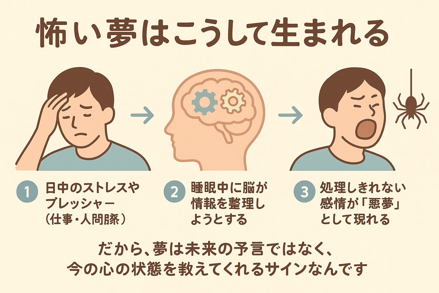 むしろ、その夢はあなたの心が発している「SOS」であり、ご自身の頑張りに気づき、ストレスと向き合うための大切なきっかけです。