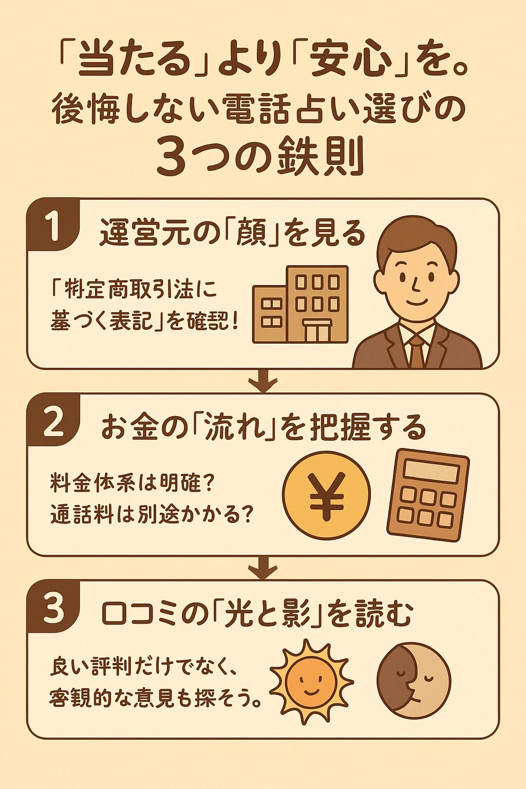 「当たる」より「安心」を。後悔しない電話占い選び、専門家が教える3つの鉄則