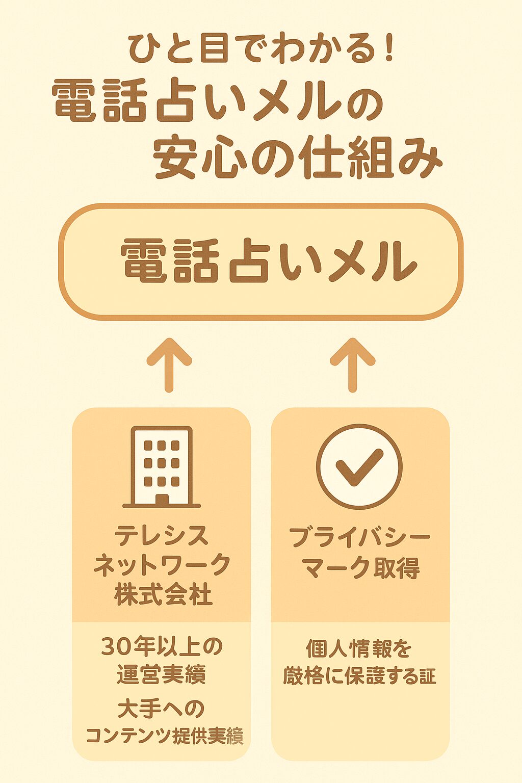 電話占いメルを運営しているテレシスネットワーク株式会社は、設立から30年以上の歴史を持つIT企業です。実はこの会社、Yahoo!占いやLINE占いといった、誰もが知る大手プラットフォームにも占いコンテンツを提供してきた実績があります。全くの新規参入企業ではなく、長年にわたって業界で信頼を積み重ねてきた企業が母体であることは、大きな安心材料と言えるでしょう。