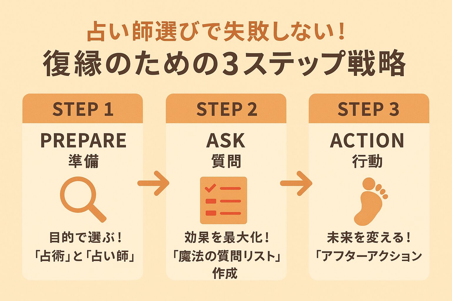 復縁の成功確率を上げる鍵は、単に「当たる」と評判の占い師を探すことではありません。あなたが主体的に鑑定を「活用」する戦略を持つことです。ここでは、そのための具体的な3ステップ戦略をご紹介します。