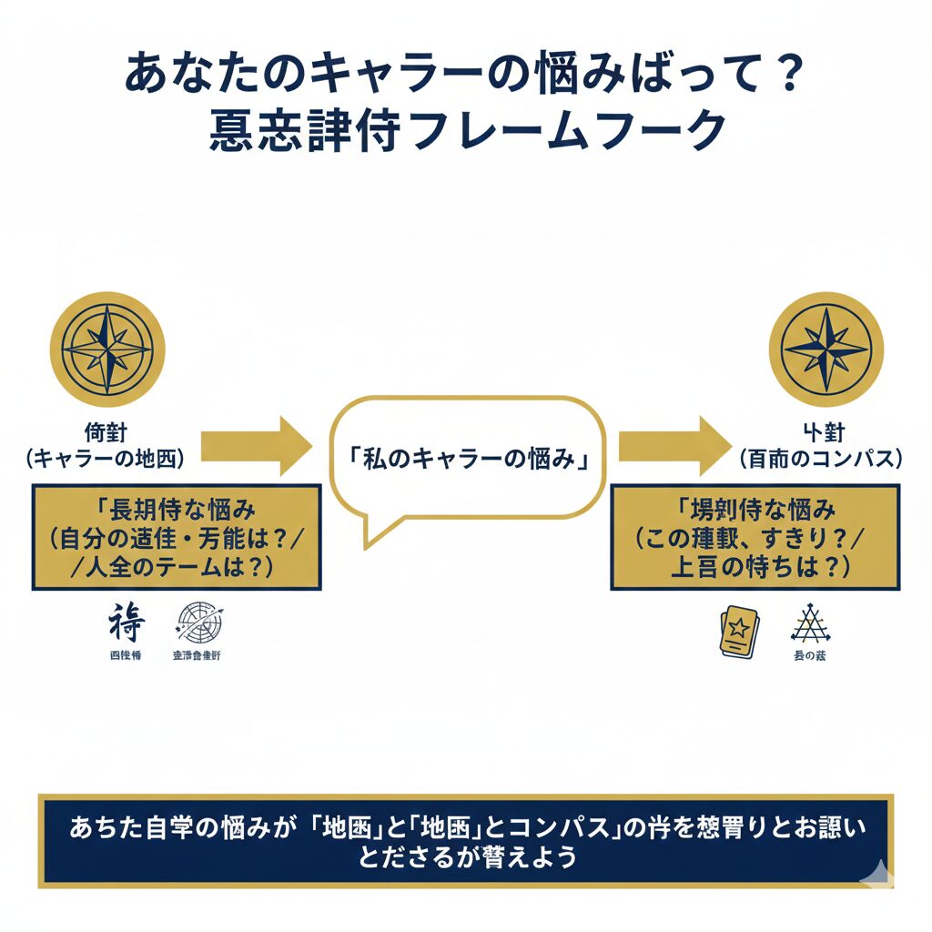 この命術と卜術は、キャリアプランにおける「地図」と「コンパス」のような補完関係にあります。命術があなたのキャリア全体の「地図(長期戦略)」を描き出すのに対し、卜術は目の前の分かれ道でどちらへ進むべきかを示す「コンパス(短期戦術)」として機能します。