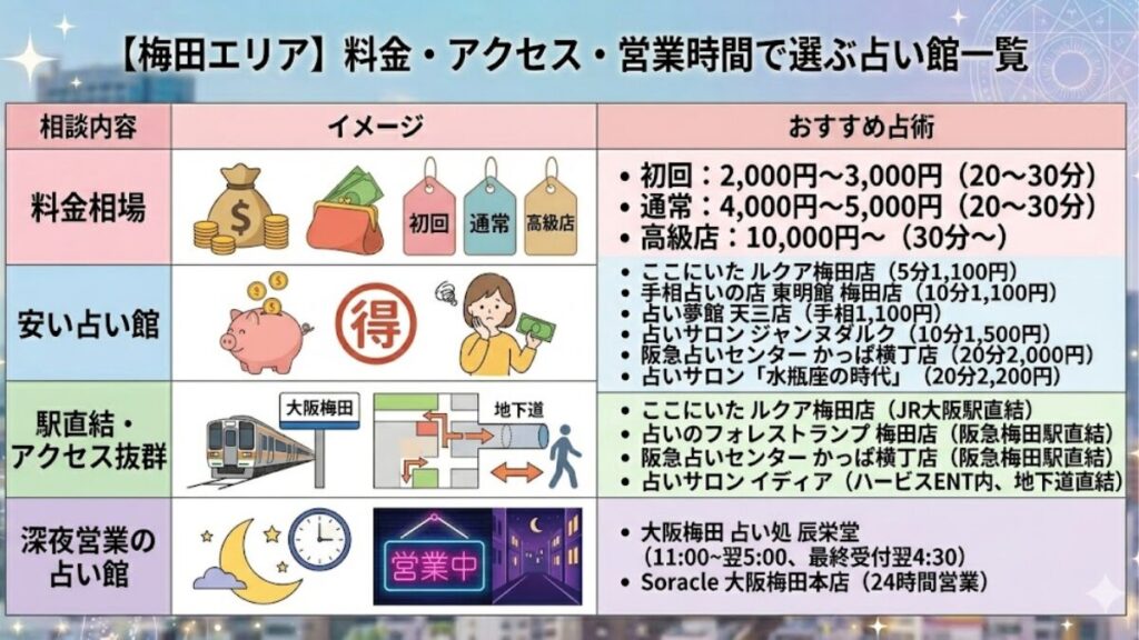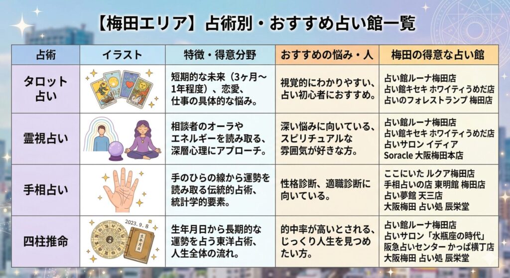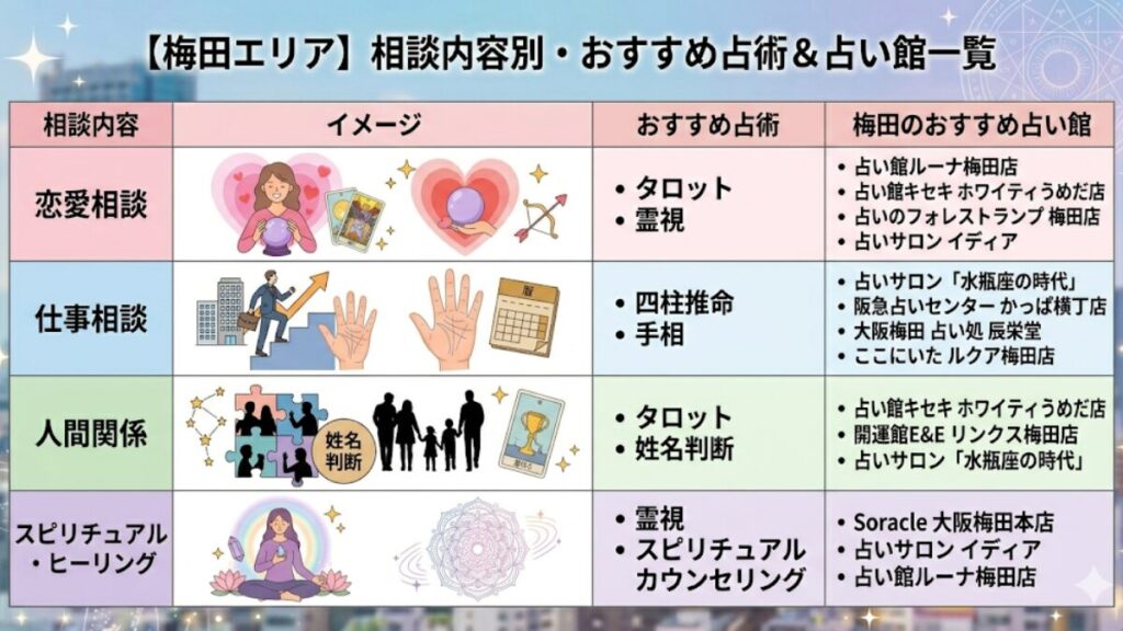 - 梅田で当たると評判の占い館25選(各店舗の詳細情報・口コミ付き)