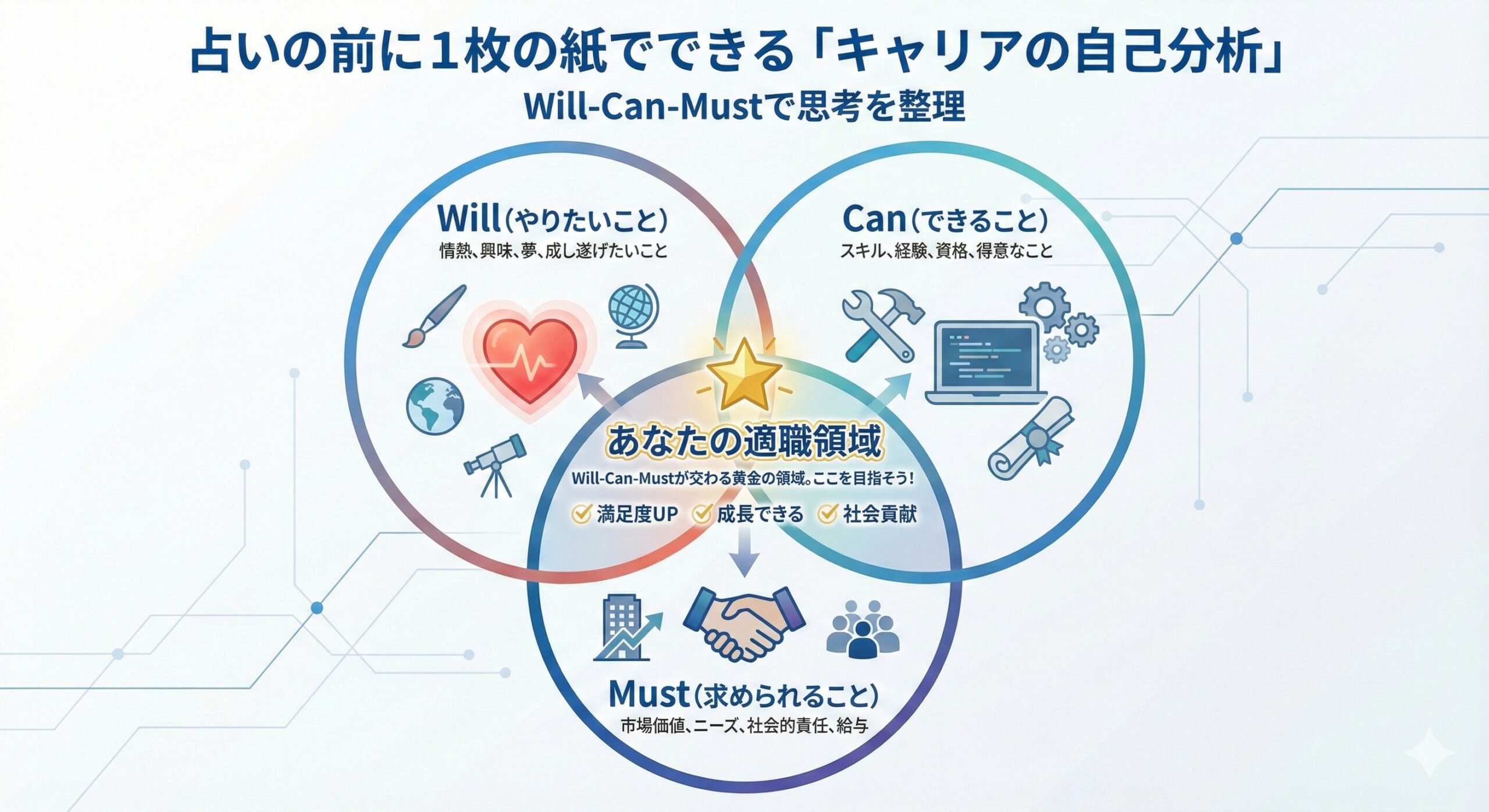 電話占いの質を高める「準備」として、相談前に「Will-Can-Must」というフレームワークで、ご自身の考えを整理してみましょう。